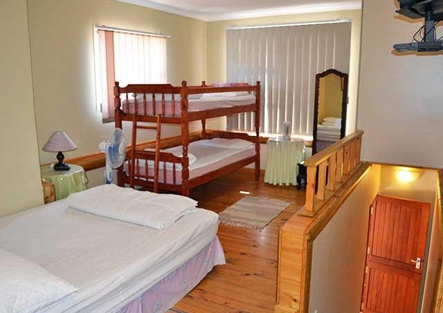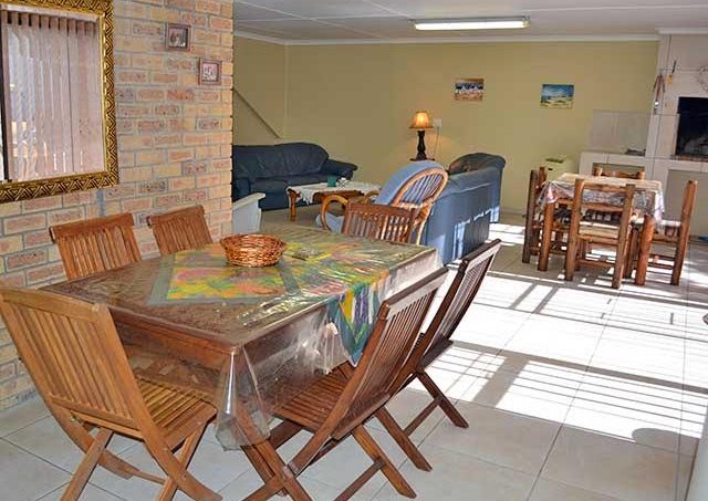 Slaapplek vir 6 persone in ‘n veiligheidspark in Hartenbos, ongeveer 2 km van die strand en 8 km van Mosselbaai. Die park het ‘n swembad, tennisbaan, wassery en is naby ‘n superet geleë. Die eenheid het 2 slaapkamers met 2 dubbelbeddens + ‘n stapelbed + ‘n badkamer met ‘n stort, wasbak en toilet bo, en onder is ‘n eetkamer / kombuisie / badkamer met ‘n stort en toilet en ‘n groot leefarea met ingeboude braai.